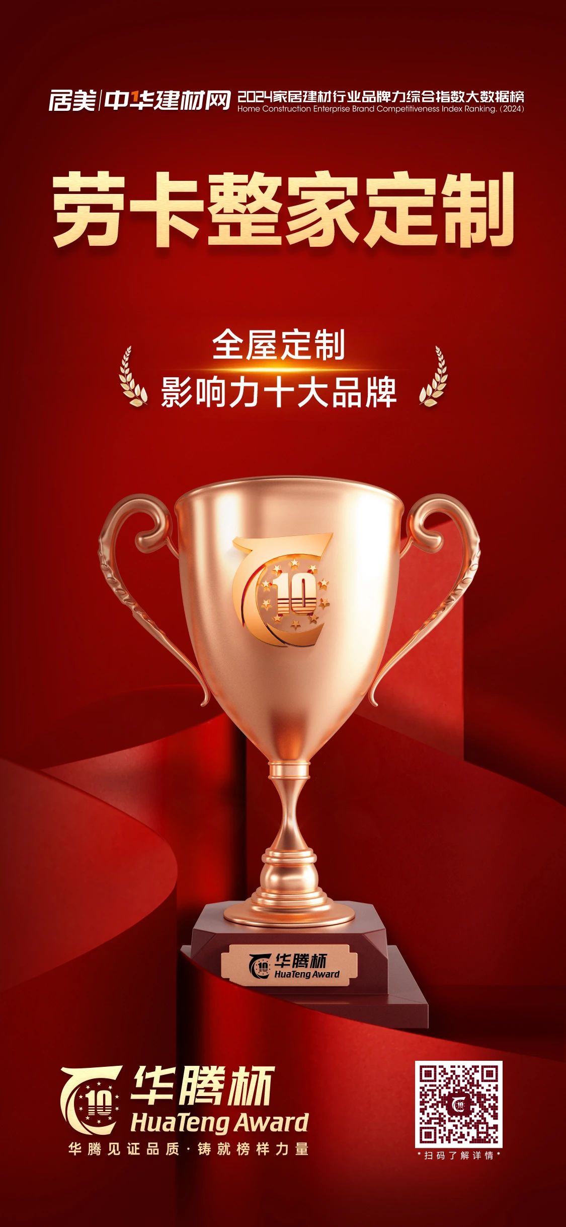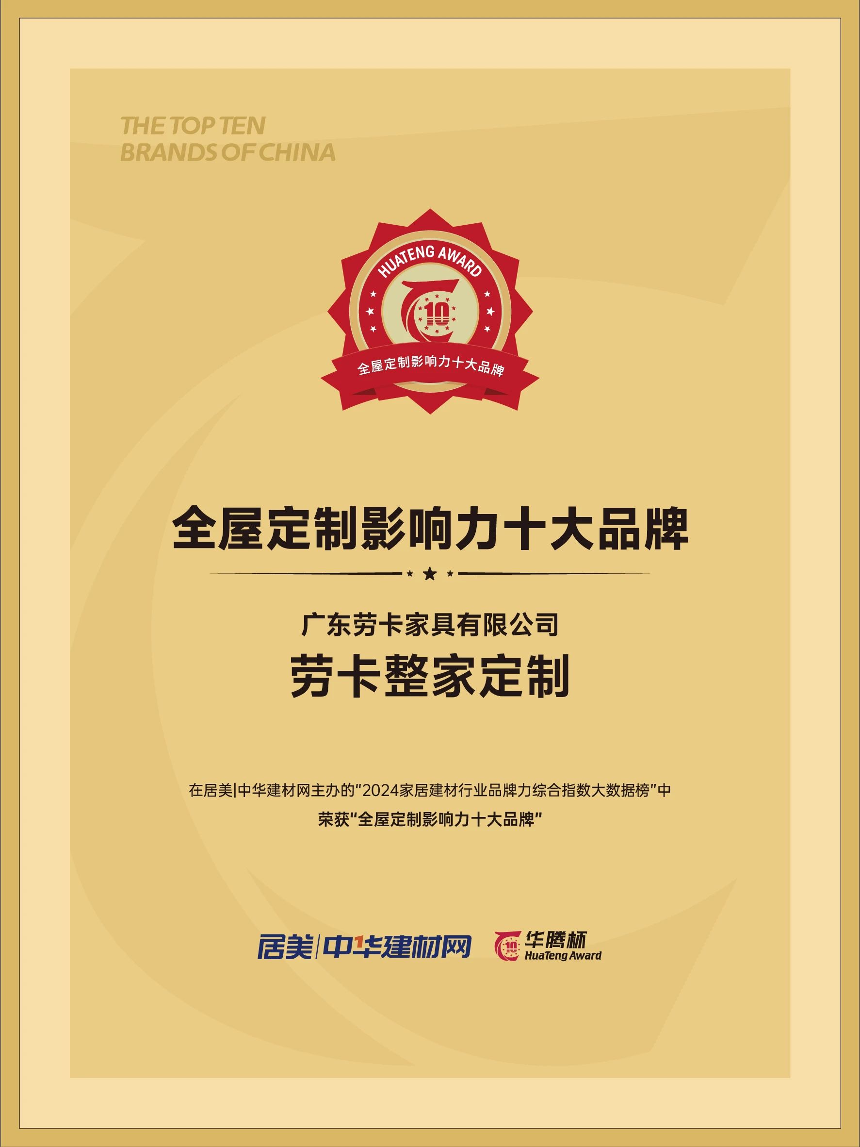 天生赢家凯发一触即发此次荣获“华腾杯”2024年全屋定制影响力十大品牌,这是对我们不懈追求卓越品质和顶尖质量的认可和褒奖。