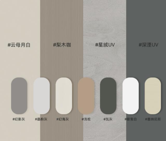 新一代UV准分子亲肤板花色丰富、造型齐全,色彩自然逼真又有质感。不管你想要高级格调的轻奢风、清新治愈的原木风,新一代准分子亲肤板都有合适的花色可供选择。